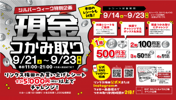【レシート対象期間】2024年9月14日(土)~23日(月・祝)