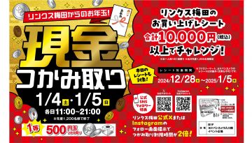 2日間限定!LINKS UMEDAのお買い上げレシート合計10,000円(税込)以上でチャレンジしよう♪