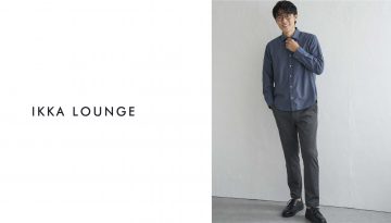 ikkaで大人気のデニムライクスイスカラーシャツに、定番のGOKUラクパンツを合わせた定番シャツスタイル