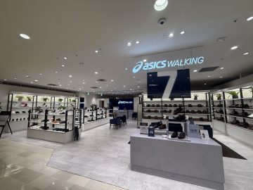 店内はブランドカラーであるASICS WALKINGブルーを軸に、ホワイトとグレーの落ち着いた雰囲気となっており、お客様にリラックスして過ごしていただけるディフューザーを設置して今までよりも五感で楽しめる空間に生まれ変わりました。